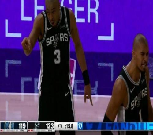 迎着老狐狸的防守,45度角的甩狙3分命中,追到2分直接打停马刺。
