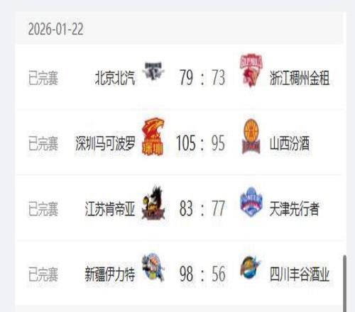 CBA常规赛,1月22日晚上一共安排了4场比赛,其中江苏队在主场以83-77战胜天津队,深圳队主场以105-95战胜山西队,北京首钢队主场79-73战胜浙江稠州队,新疆队主场98-56大胜四川队。这4场比赛过后CBA最新的积分排名广厦队稳居第一,北京首钢队重回前四,深圳队升至第六,新疆队在二连胜之后也升至第十二名,进入了季后赛的行列。