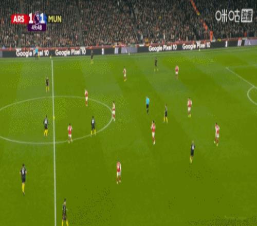 第50分钟,曼联反超比分。B费中路和多古连续做撞墙配合,随后弧顶多尔古远射世界波破门,阿森纳1-2曼联。
