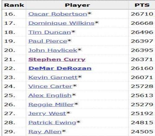 在本场比赛中,库里完成了对绿军名宿哈弗里切克的超越,同时还追平了另一位绿军名宿保罗-皮尔斯,生涯常规赛总得分升至历史第19位。