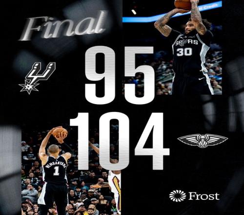 鹈鹕拒逆转胜马刺锡安24+10+4萨迪克贝24+10文班16+16