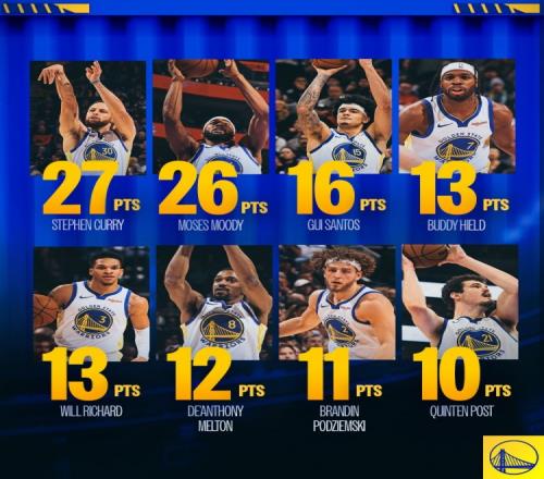 赛后勇士发布数据海报:本场比赛八人得分上双!