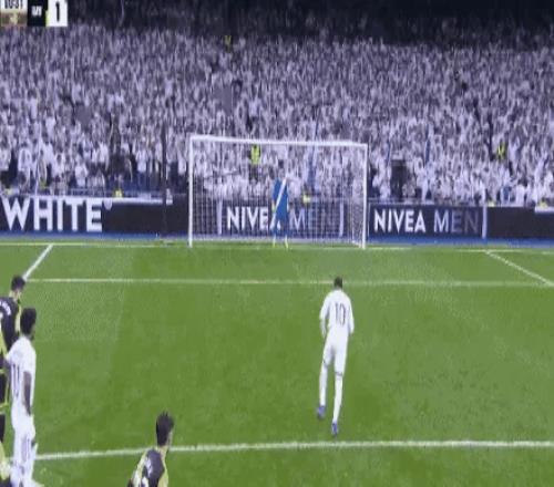 第98分钟,巴列卡诺后卫在禁区内解围时,踢到了皇马球员,被判罚点球。
